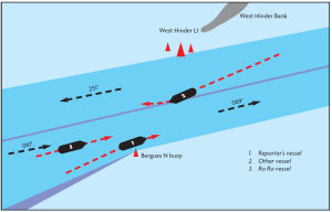 I will be looking back at the recordings for this incident to get a better understanding of it and any follow up action that came from it. If there is any requirement for awareness I will ensure this is promulgated to our teams. However, it may useful to mention that a vessel in this situation may report a breach of Collision Regulations to the Coastguard and can also do the same within French territorial waters to CROSS Gris Nez, this would then form a hazardous incident report which has a specific investigation procedure associated with it and can be useful to us to ensure effectiveness of the traffic lanes and maritime safety”.