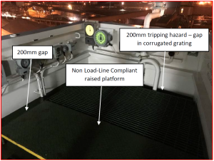 Tripping hazards on a bridge wing – height to coaming must be a minimum of 1000mm